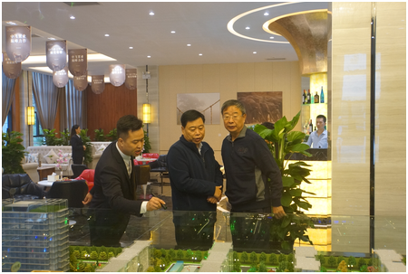 中國飛行試驗研究院黨委書記宋躍進(右一)和華原控股有限公司總裁魏進民(右二)聽取項目介紹