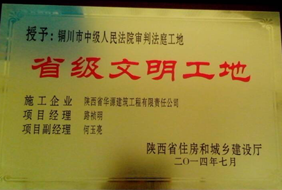 熱烈祝賀華源建筑公司銅川法院項目榮膺省級文明工地